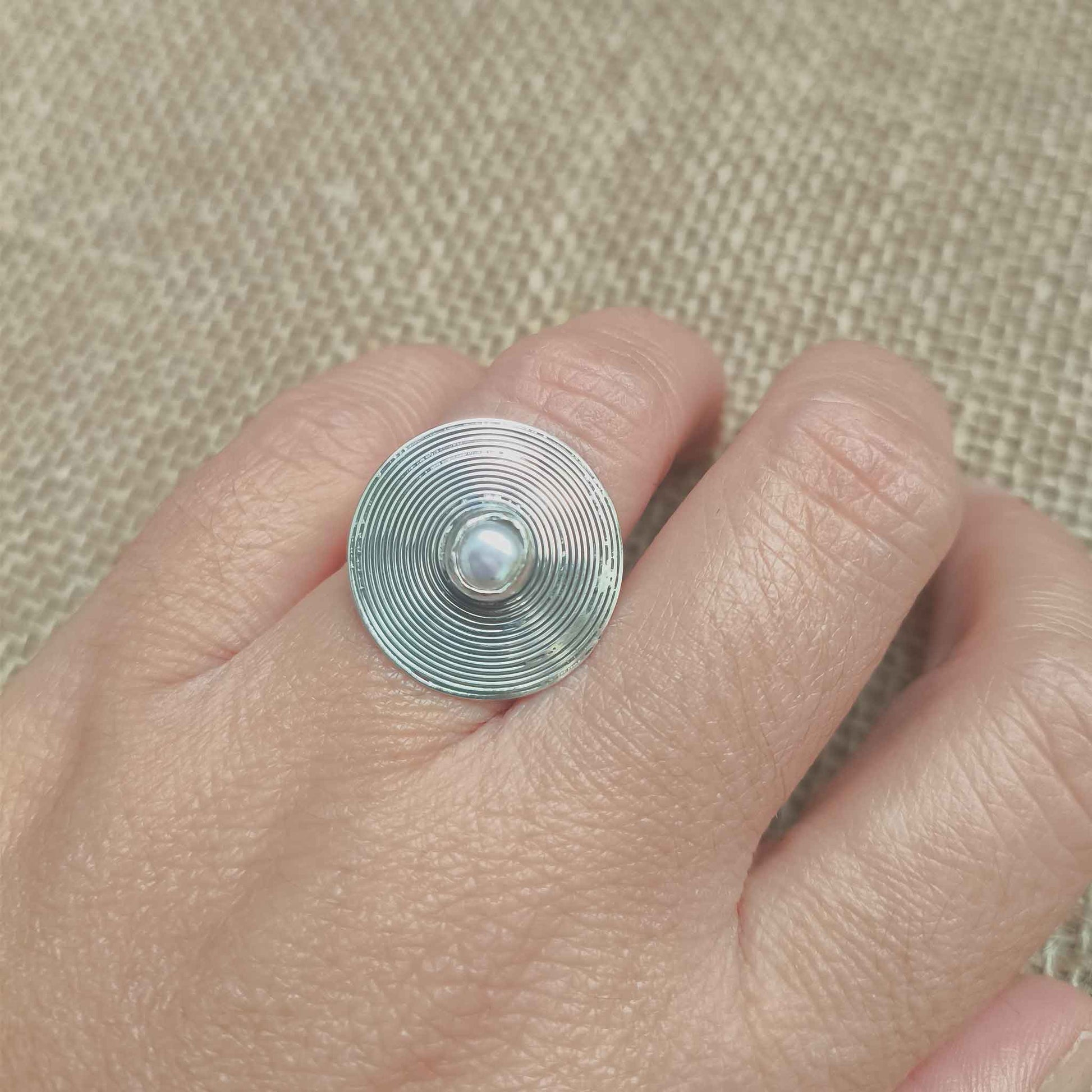 Anillo Ajustable en Plata de Ley y Perla - Círculos de Energía y Armonía Mágica