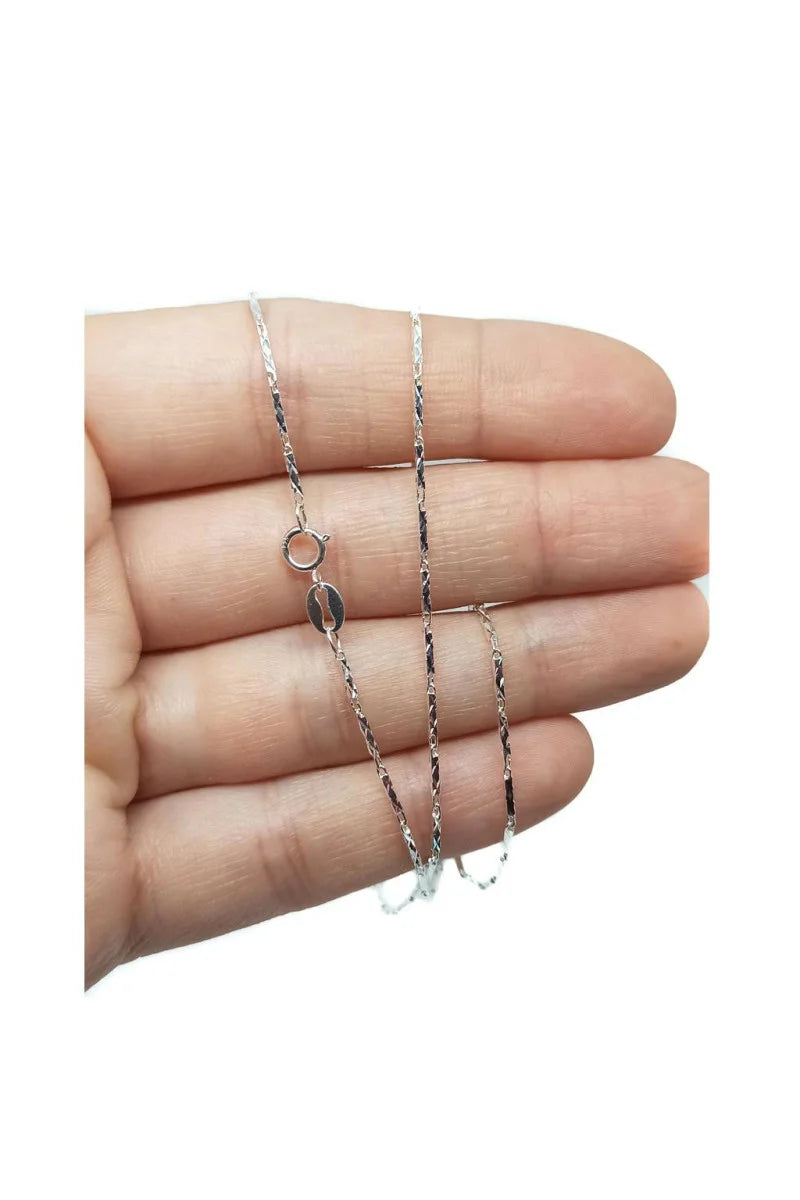 Cadena fabricada en Plata de Ley 925. Cadena cuadrada de 1 mm de grosor y 45 cm de largo.