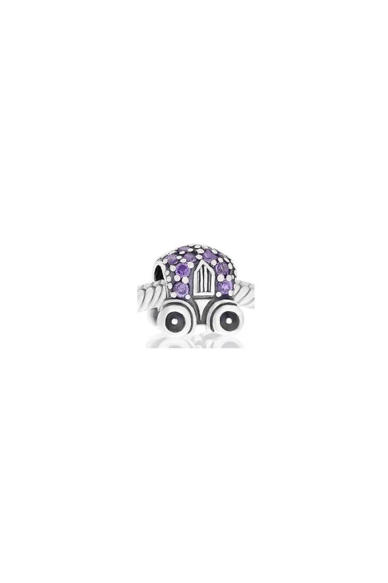 Charm fabricado en Plata de Ley 925. Uno de los más interesantes abalorios para pulseras con forma de carroza calabaza con piedras malva, compatible con la pulsera pandora, Bantu, Chamilia, Viceroy, Bacio etc. Lleva rosca.