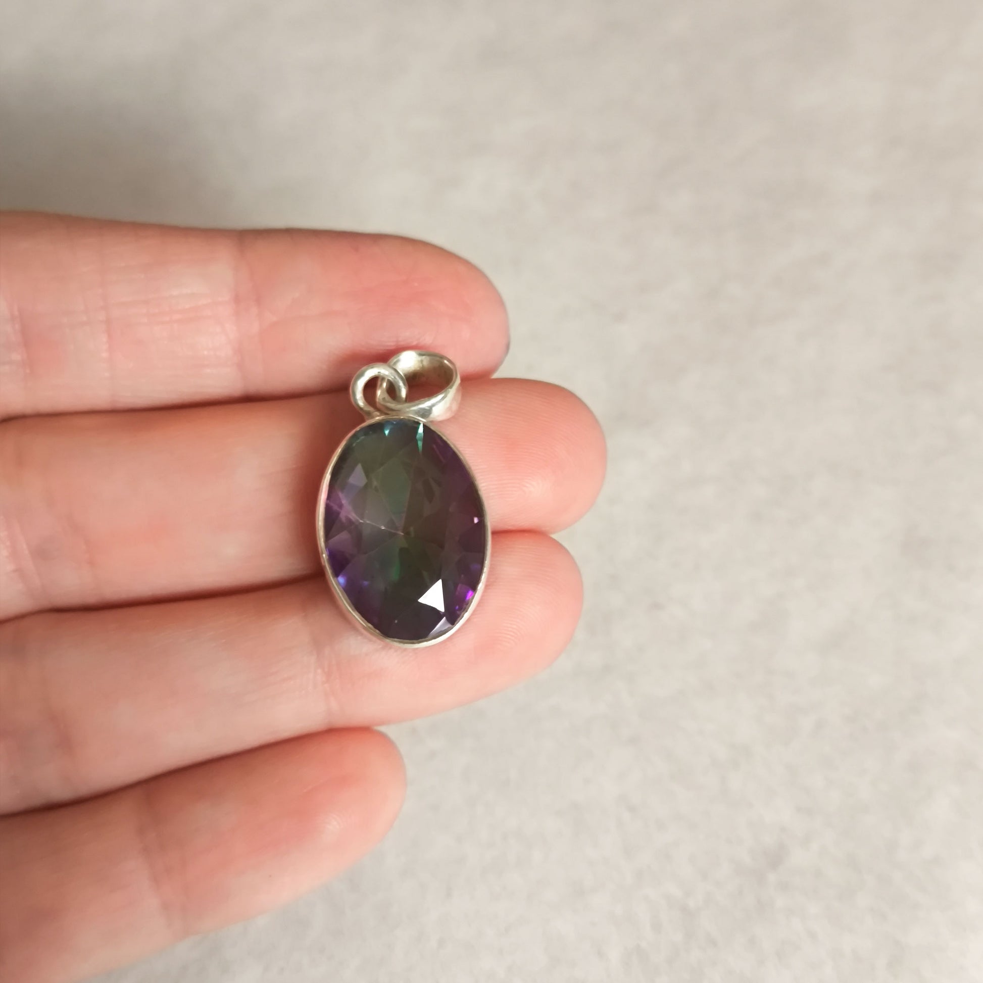 - Proceso: El cristal de cuarzo natural se somete a un proceso de vaporización con titanio y otros metales, que se funden a la superficie creando su deslumbrante capa iridiscente. Este proceso potencia la energía del cuarzo base.