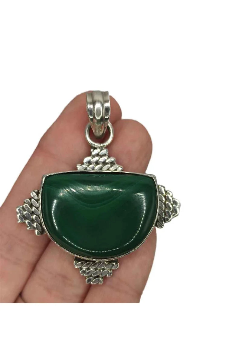 ¡Descubre el colgante de plata de ley 925 con piedra natural de malaquita de ! 💎