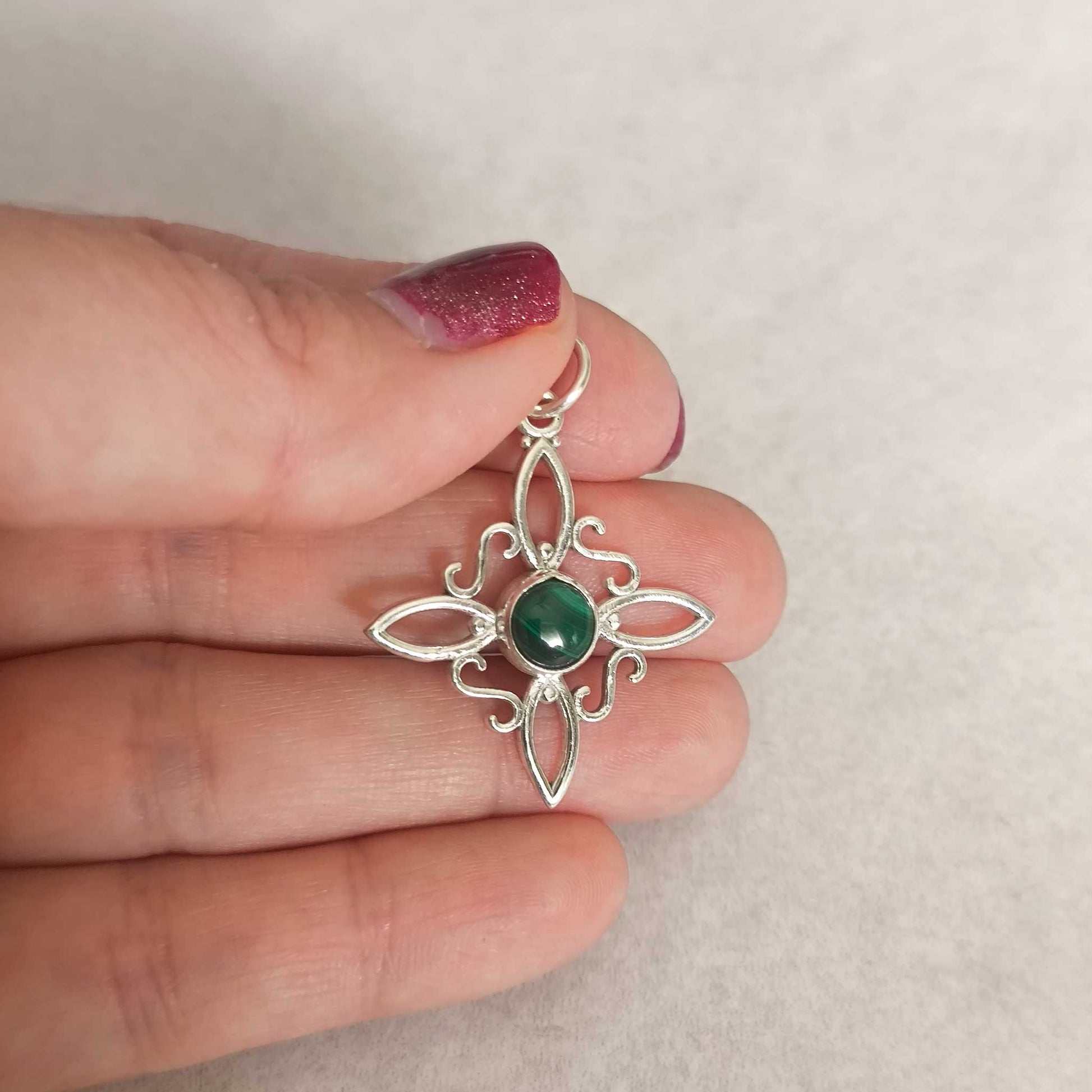 Colgante Nudo de Bruja en Plata de Ley 925 con Malaquita Natural