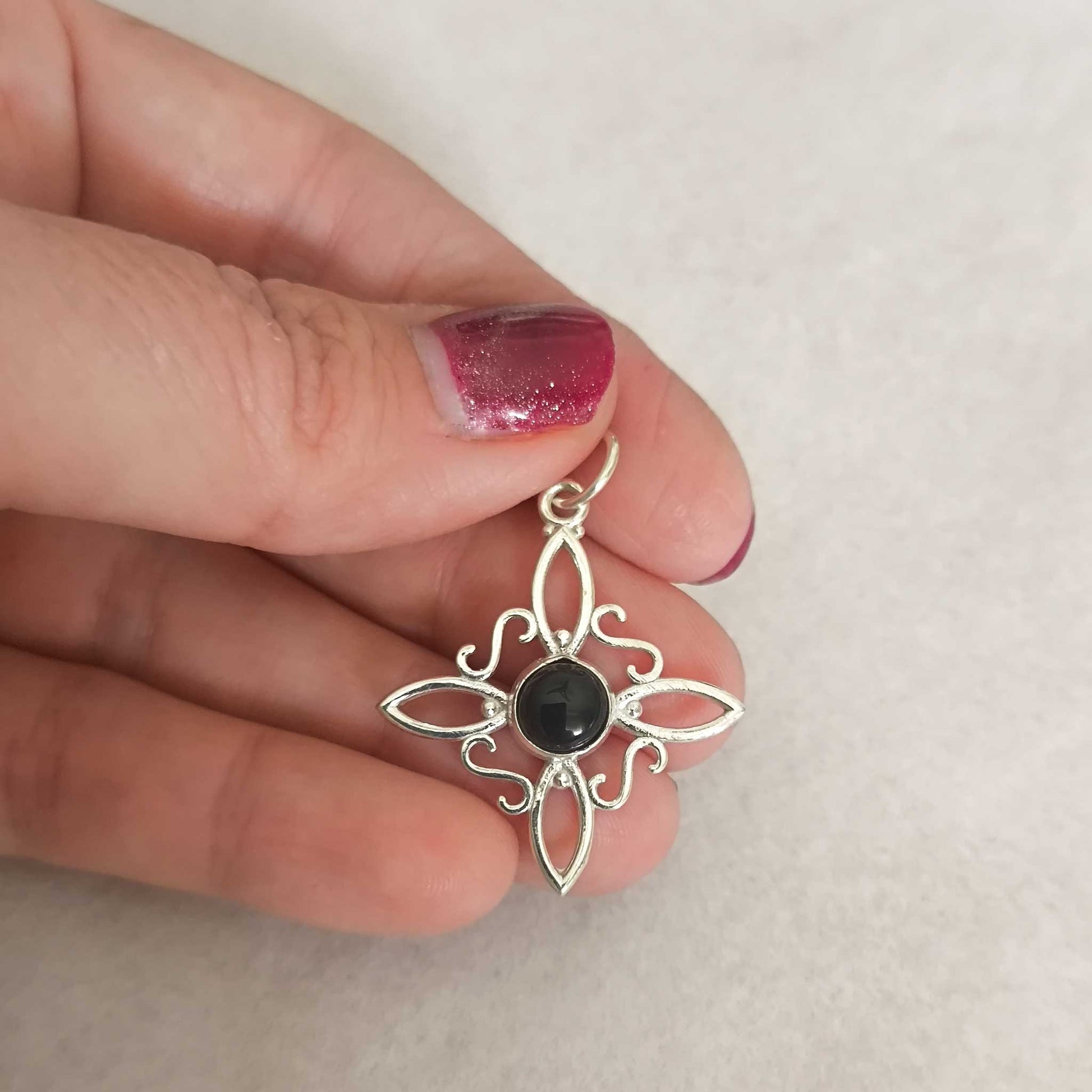 Colgante Nudo de Bruja en Plata de Ley 925 con Ónix Natural