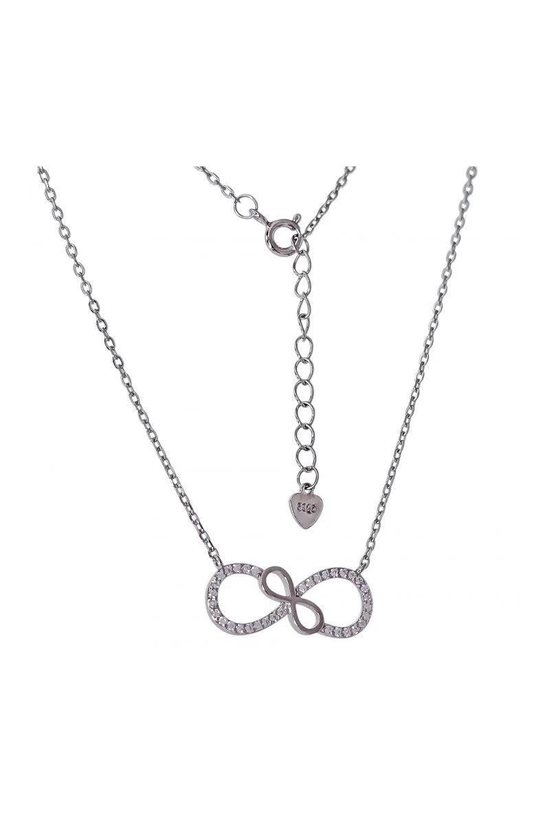 ✨ Gargantilla de plata 925 rodiada con diseño de infinito doble ♾️, microengastado 💎 y liso. Ajustable (41.5 cm + 3 cm).