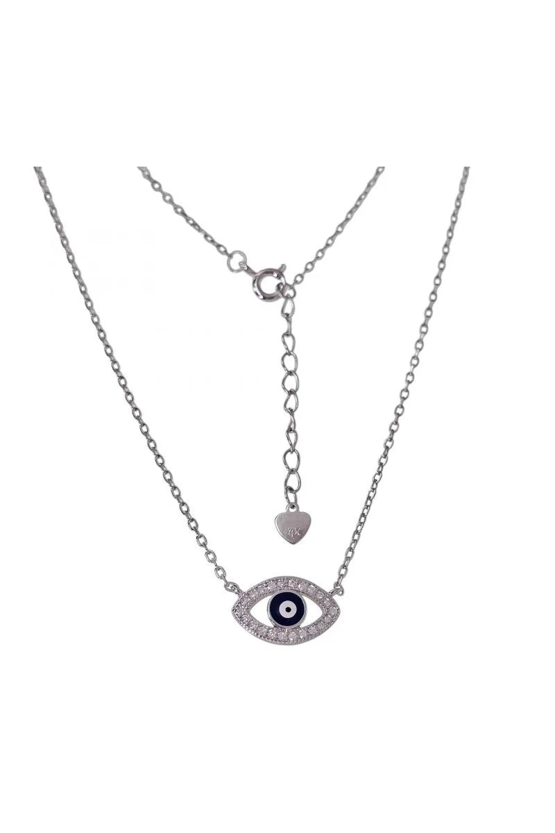 ✨ Gargantilla de plata 925 rodiada con diseño de ojo turco 🧿 y piedras microengastadas 💎. Ajustable (42 cm + 3.5 cm).
