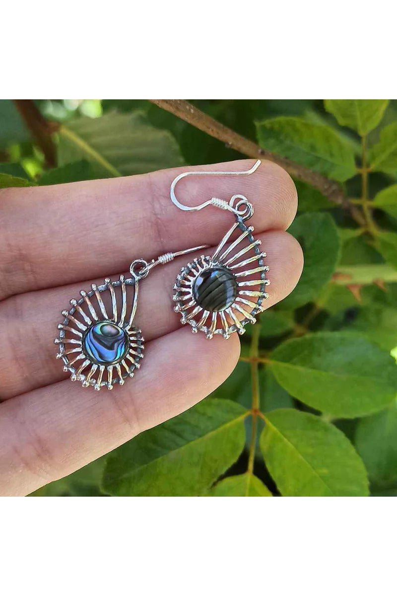 Pendientes Largos de Plata de Ley 925 con Piedra Abalón