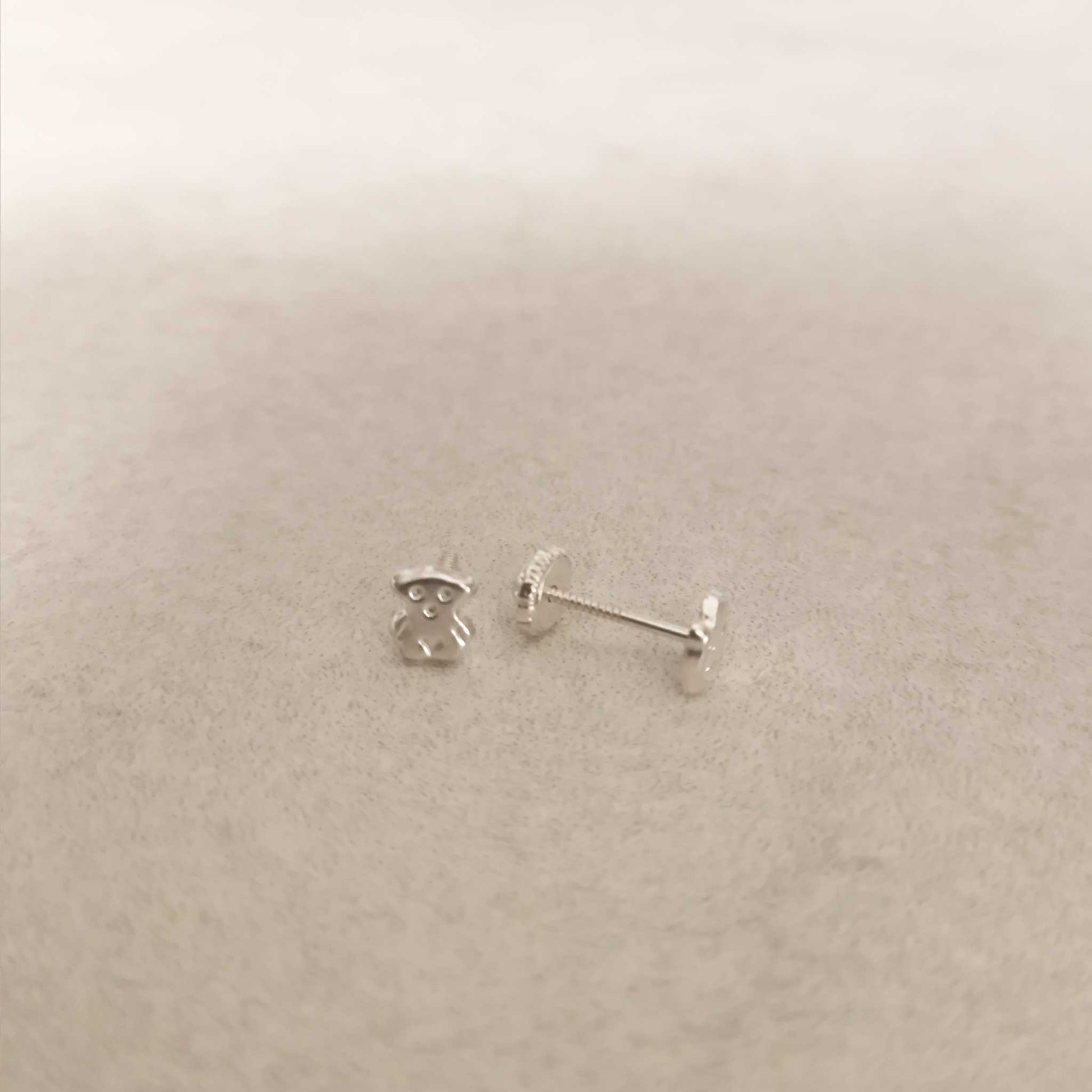 Pendientes Osito Bebé/Niña en Plata de Ley 925 con Cierre a Rosca de Seguridad