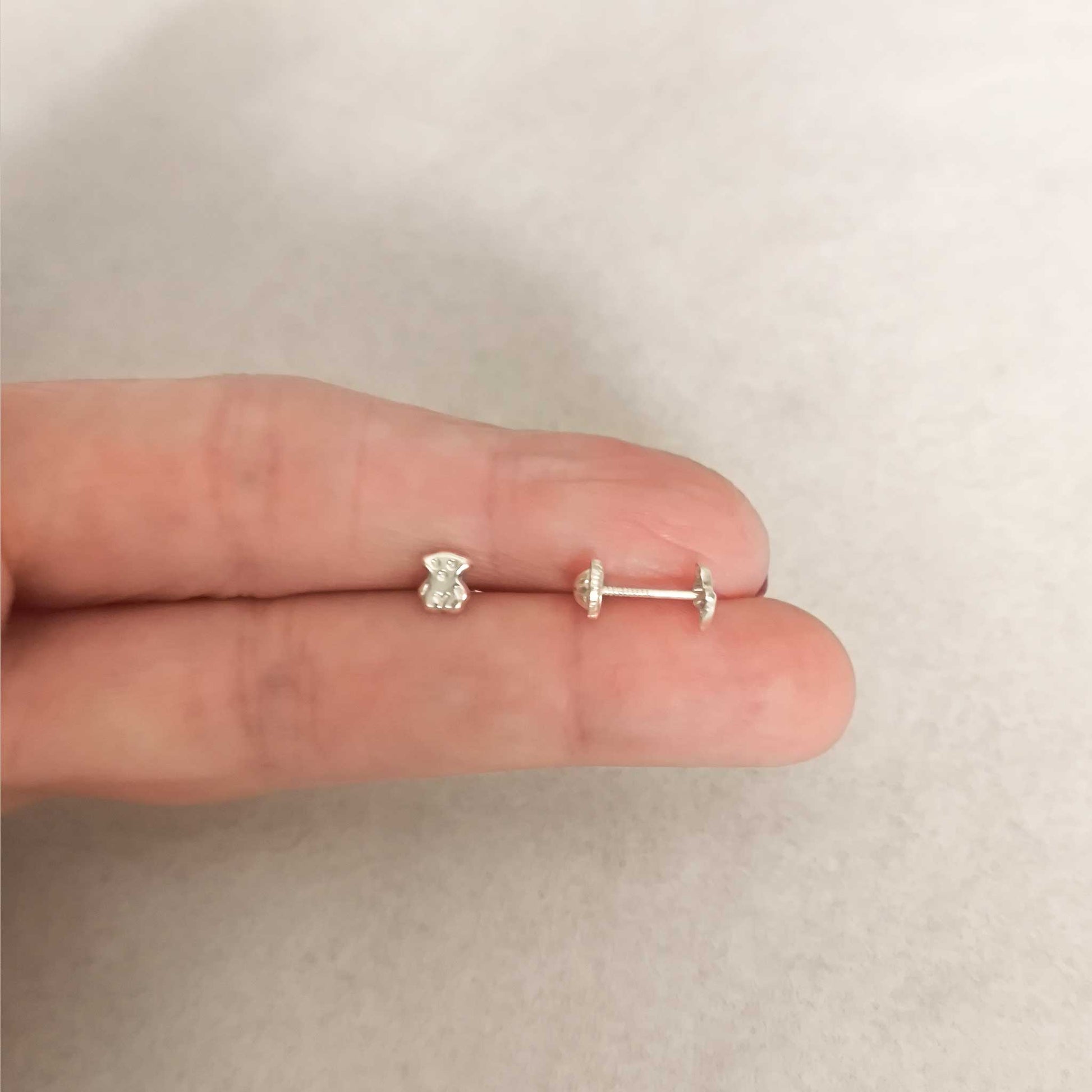 - Diseño: Tierno diseño de osito, símbolo universal de cariño, protección y amistad. Su tamaño mini (5.1 x 4.4 mm) es ideal y discreto para el lóbulo de niñas y bebés.