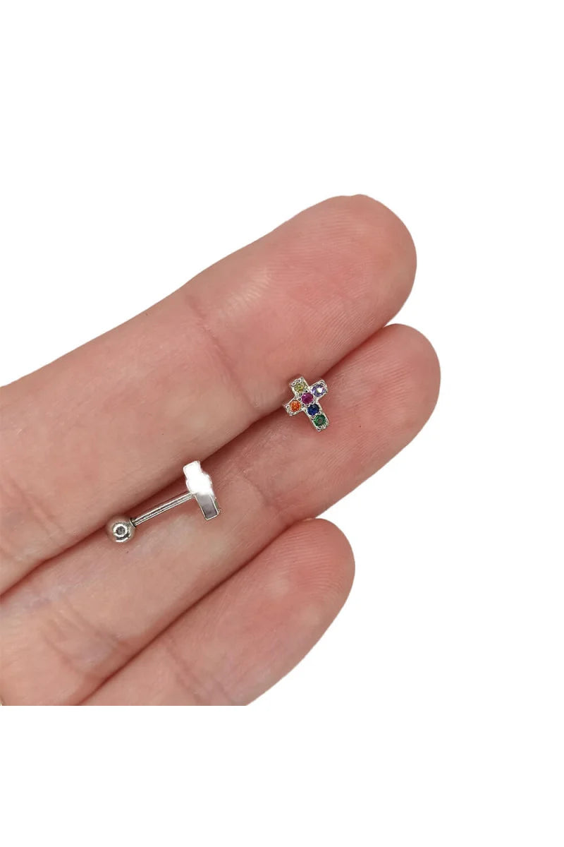 Por un lado, lucen una deslumbrante Cruz rellena de circonitas de colores 🌈 (6 x 4.72 mm), ¡simbolizando estilo y elegancia! 💫 Mientras que por el otro, encontrarás una delicada bolita de 3 mm con rosca, ¡perfecta para un look más sutil y versátil! 🔘💖