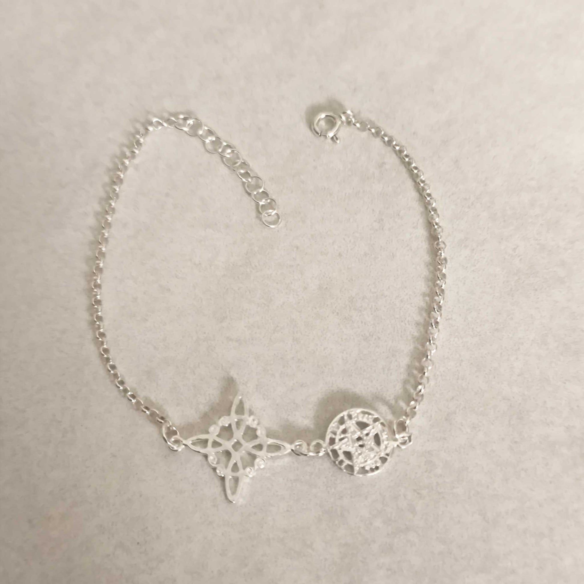Pulsera de Doble Protección en Plata 925 - Nudo de Bruja y Tetragramatón