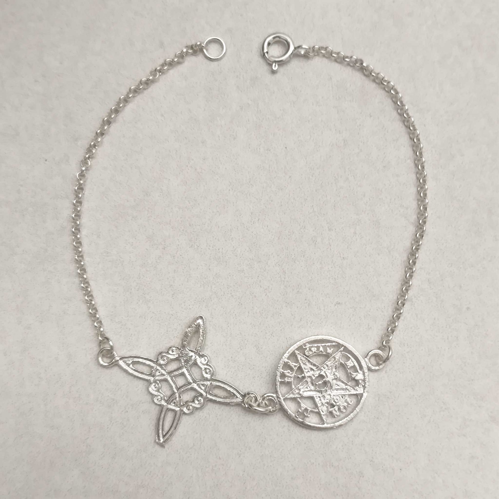 Pulsera de Plata 925 con Nudo de Bruja y Tetragramatón - Transformación, Intuición y Protección
