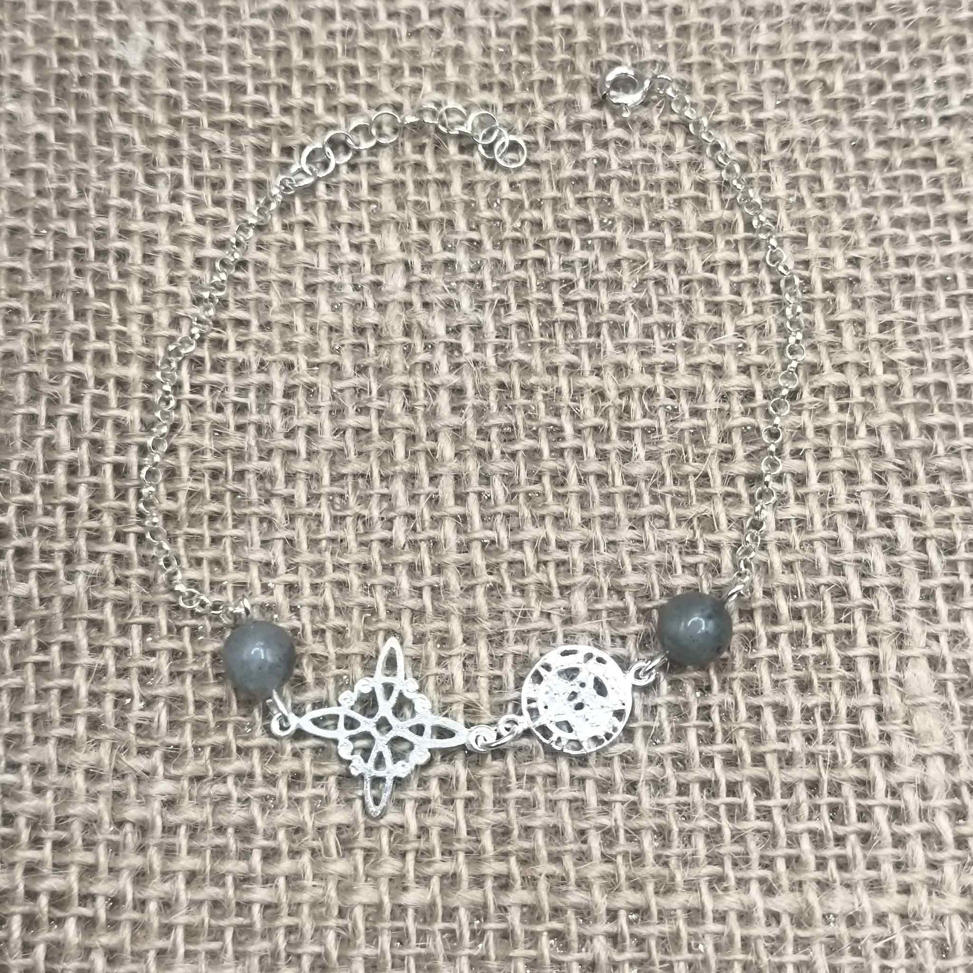 Pulsera de Triple Protección Mística (Plata de Ley 925) - Nudo de Bruja, Tetragramatón y Labradorita (18.5 + 2.5 cm)