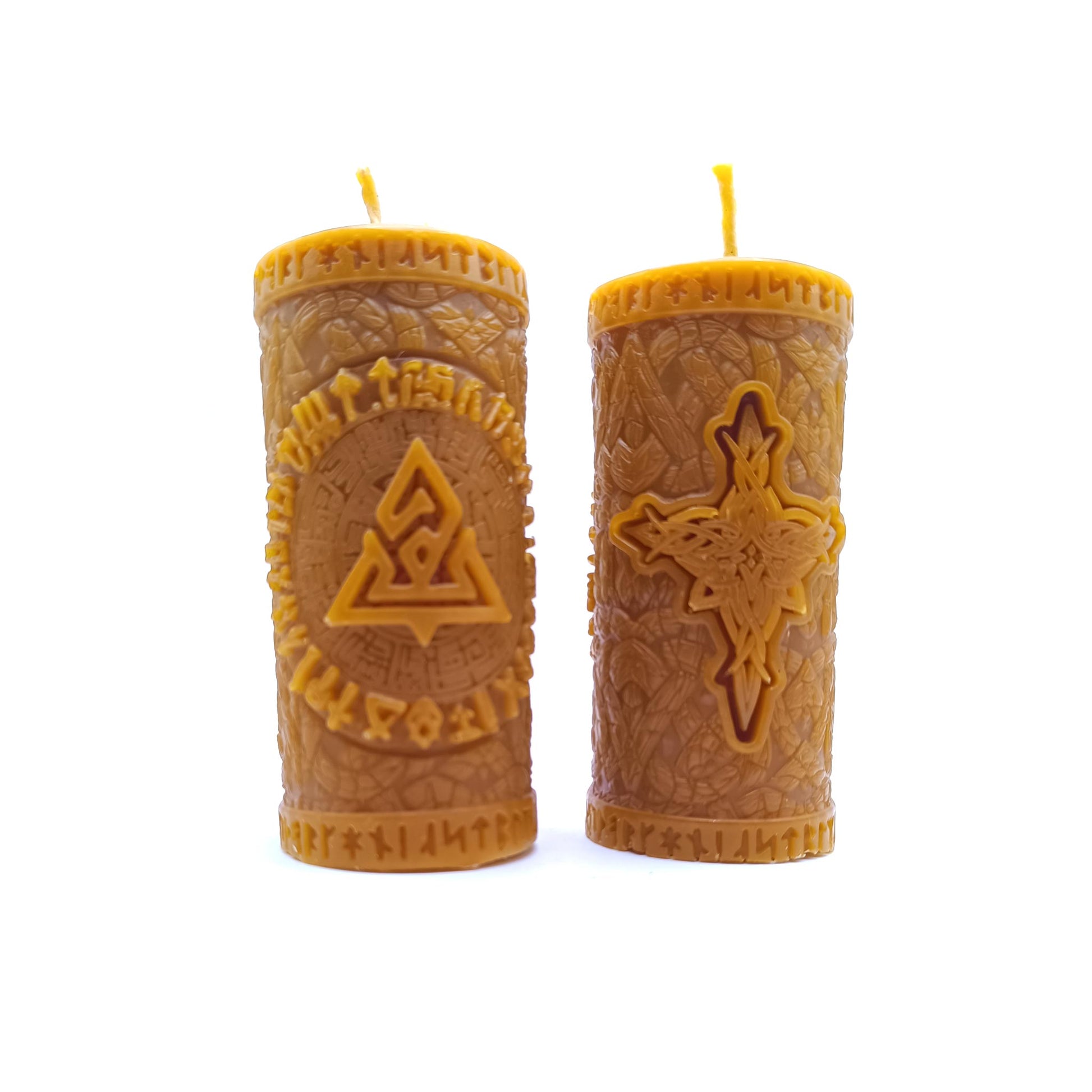La cera de miel ofrece una quema prolongada y limpia junto con un delicado aroma natural y dulce. Es la pieza central perfecta para tu altar, santuario o espacio esotérico, infundiendo el ambiente con un aire de misticismo nórdico y protección.